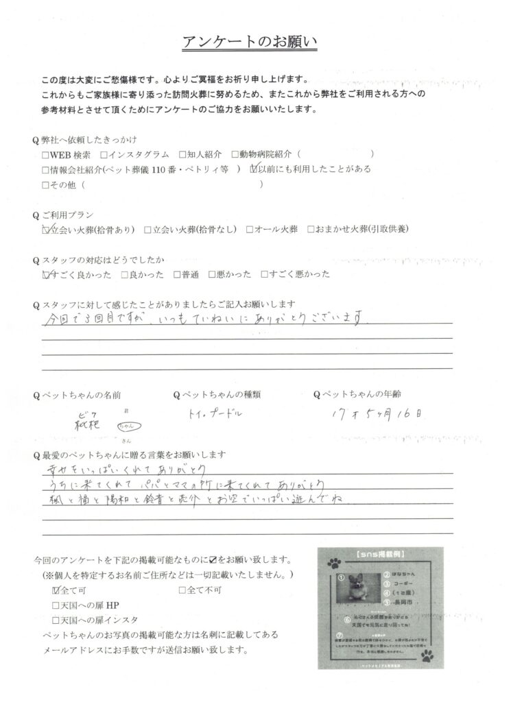 この度は、新潟県長岡市の枇杷ちゃんの葬儀を行いました。
