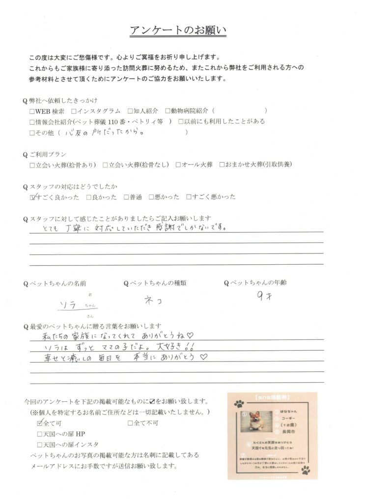 この度は、新潟県長岡市のソラちゃんの葬儀を行いました。