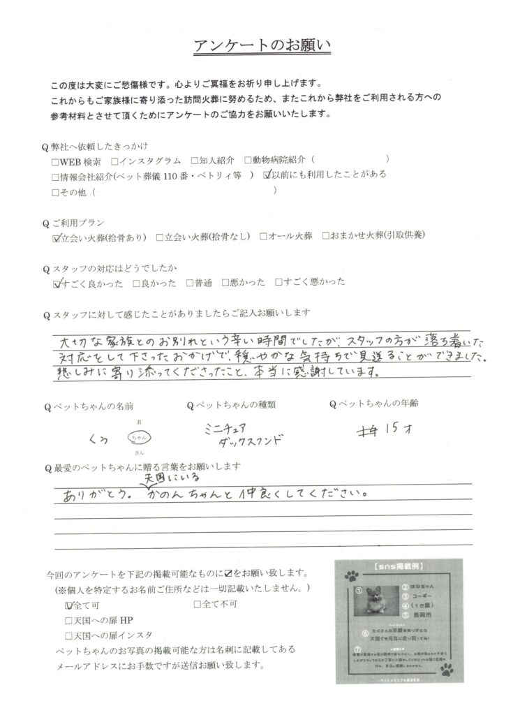 この度は、新潟県見附市のくぅちゃんの葬儀を行いました。