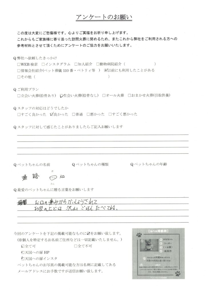 この度は、新潟県新潟市の姫路ちゃんの葬儀を行いました。